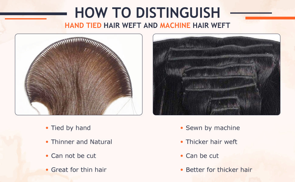 Click here to learn the difference between hand tied hair weft and machine made hair weft.