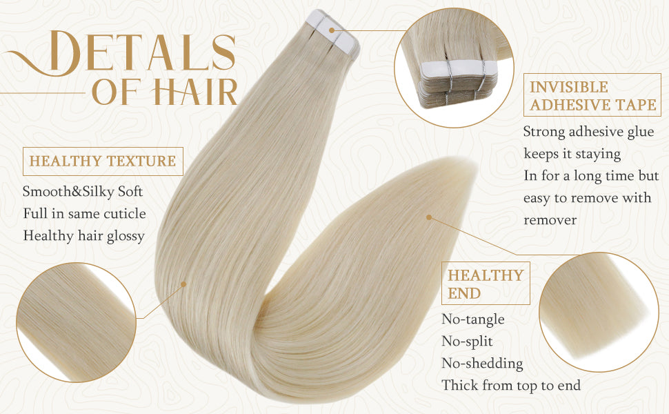 Up To 73% Off Seamless Injection Tape in Hair Extensions 100% Brazilian Virgin Hair Platinum Blonde Color(#60)