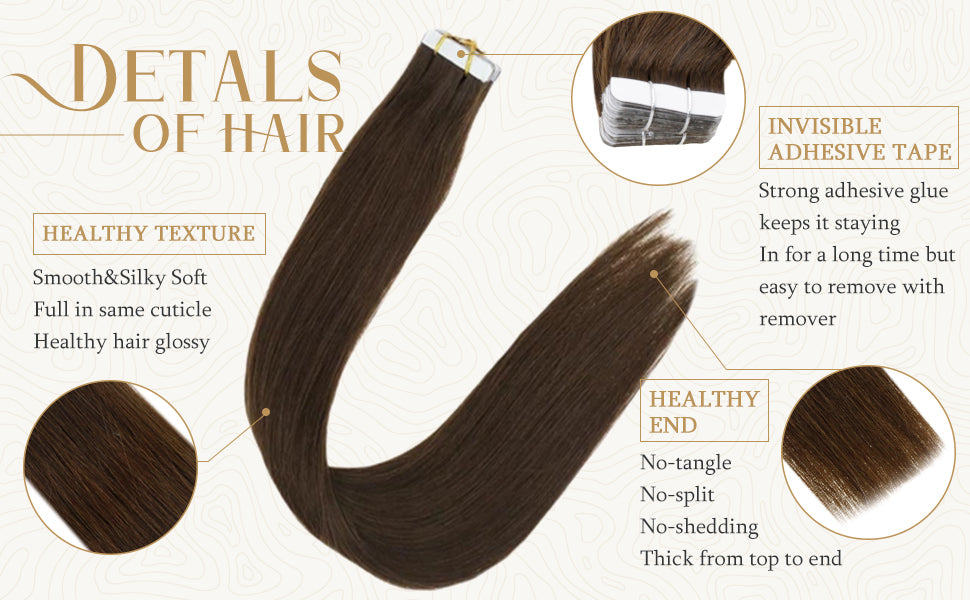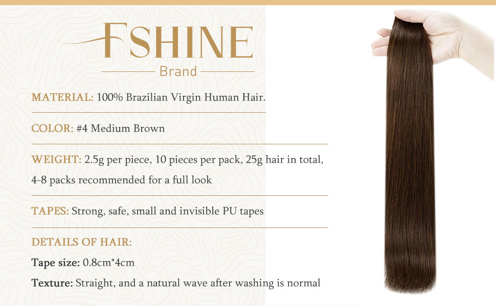 Up To 73% Off Seamless Injection Tape in Hair Extensions 100% Virgin Real Hair Brown Color(#4)