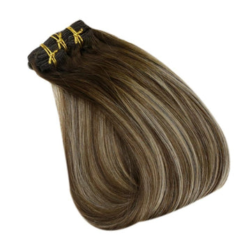 Fshine Pu Seamless Clip in Extensions 100% Human Hair Balayage #18/22/60