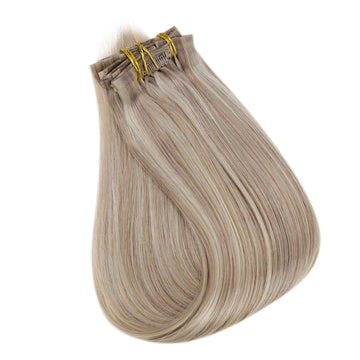 Fshine Pu Seamless Clip in Extensions Human Hair Blonde Highlights #18/613