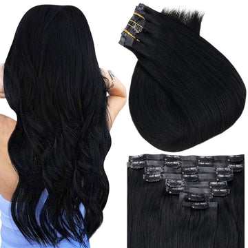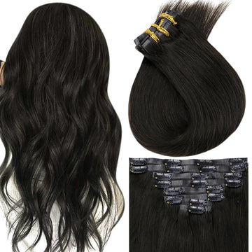 Fshine Clip in Extensions 100% Remy Human Hair 7 Pieces Off Black #1B